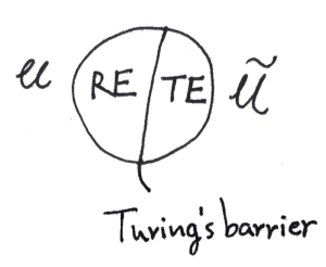 $RE$ 表示全部图灵可识别语言(Chomsky 形式语法 type-0),$TE$ 表示 Turing Emergenable(大概需要一个自然语言的语法层级),全部图灵可涌现识别的语言。对应通用图灵机 $\mathcal{U}$ 的为通用无限图灵机 $\tilde{\mathcal{U}}$。(由于至少一种图灵机 $M_\infty$ 有无限个,我们需要指明输入参数、算法指派的模式作为在无穷网络上的输入。)不仅 $ \tilde{\mathcal{U}} = F(\mathcal{U})$,$\mathcal{U} = F(\tilde{\mathcal{U}})$ 亦成立。