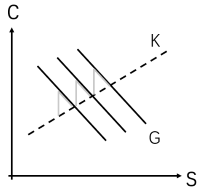 可以看到,下方的玩家 $P1$ 存在 player’ surplus 技术剩余,大小正好可使用阴影面积衡量;如果存在交易与变现的渠道,这一部分将被转移到上方,$K_{P2}\rightarrow K_{P2^\prime}$,距离 $K_G$ 的空余还可以通过游戏内的充值实现。玩家特征 K 线向下/外旋转可能来自于充值、水平提高(e.g. $\mathsf{HS}$ 扩大、更加投入)、作弊或看攻略(因此游戏厂商应尽量防止)。