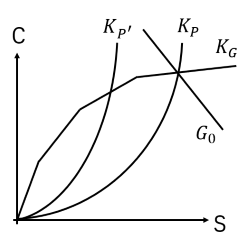 鉴于各个 instance 难度不同,实际应作出一条近似光滑的 K-curve of the game 游戏的 K 曲线。如上面各段可以表示王者荣耀中多个段位,不同 $K_P$ 被落在各个段位当中。由于人可供投入的精力有限且边际产出递减,实际玩家的 K 曲线亦会向上弯折;从而给出一个交点。