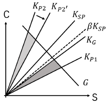 关注到整个玩家群体,充值(应为玩家提供更多剩余而非补偿)与个人精进技术在时间意义上是有区别的,交易应会使市场接近出清。这就是**游戏关系式**:$\beta K_{SP}\approx K_G$.