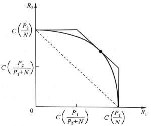 CDMA(the polyline), FDMA and TDMA(the curve)